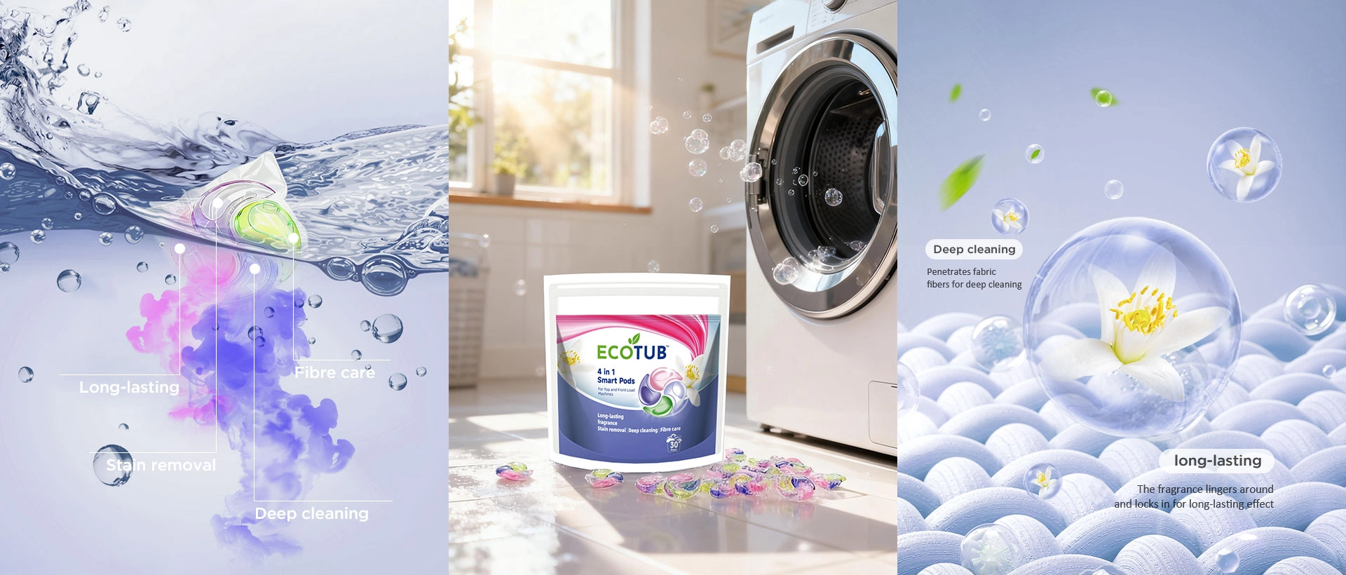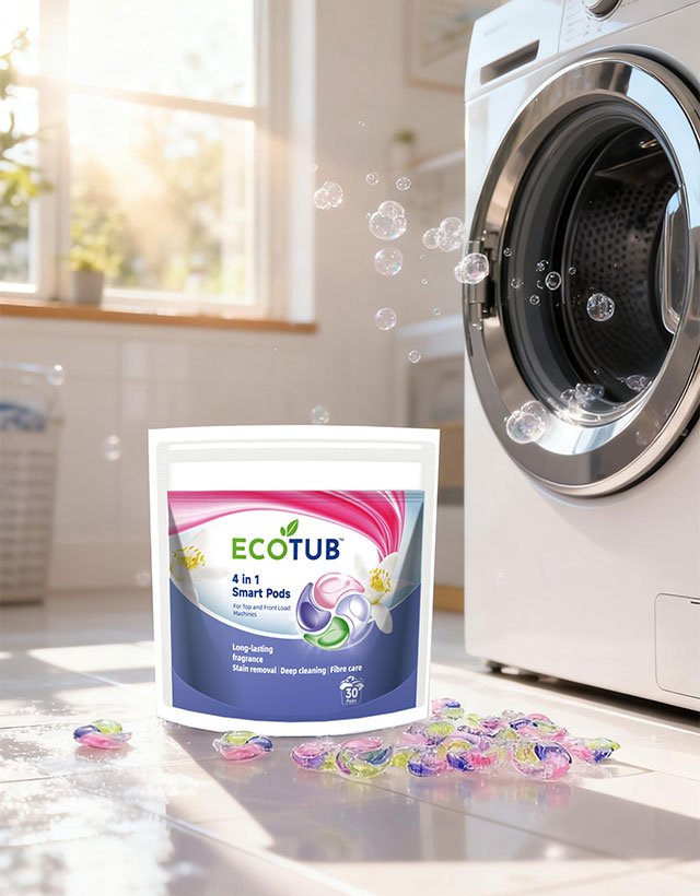 Every Ecotub pod combines four powerful ingredients in one perfectly measured pod — making laundry simple, effective, and eco-friendly.